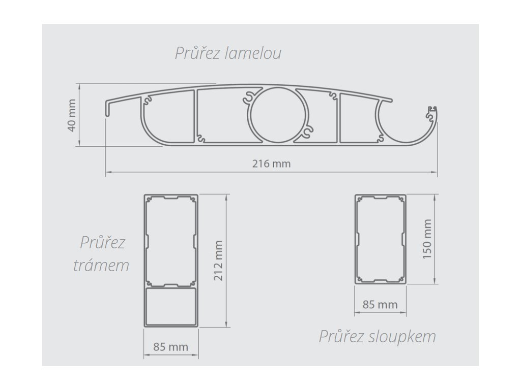 Maximální rozměry jedné pergoly jsou 4 x 7 m (šířka x délka), minimální 1 x 3,4 m. Uvedené rozměry udávají minimální a maximální délku a šířku jednoho modulu – jinak řečeno, jsme schopni dodat pergolu v libovolné velikosti v daném rozsahu.